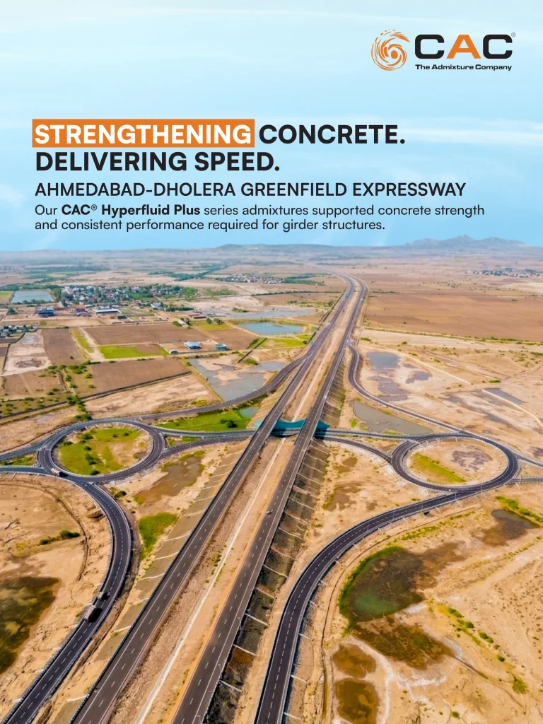 The recently inaugurated 109 km long, four-lane Ahmedabad–Dholera Greenfield Expressway, developed by the National Highways Authority of India under the Bharatmala Pariyojana, is set to strengthen regional connectivity and industrial growth. Our CAC® Hyperfluid Plus series hashtag#admixture supported the concrete strength, durability, and consistent performance required for girder structures in Package 4 of the project, […]