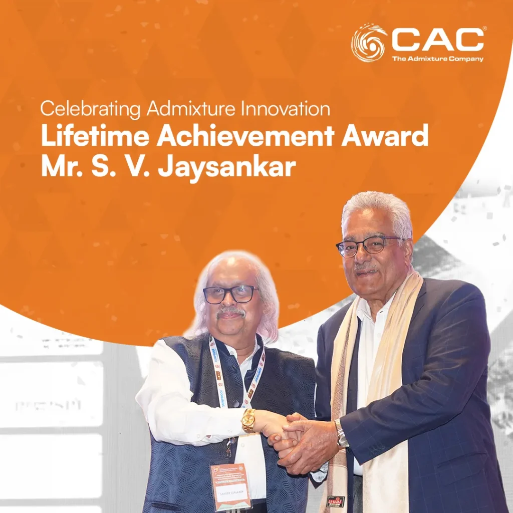 Our Group Chairman, Mr. S. V. Jaysankar, was felicitated with the Lifetime Achievement Award at the C3 – 9th International Construction Chemicals Conference, organised by the Construction Chemicals Manufacturers’ Association. This prestigious recognition honours his invaluable contributions to the growth of India’s admixture industry through innovative polymer technologies with the IndoLiga brand. By pioneering the development and introduction of lignosulphonates in India as early as 1966, followed by second-generation SNF formulations tailored for the construction industry, he played a transformative role in advancing concrete admixture technology and laid a strong foundation for modern construction chemistry practices across the country.